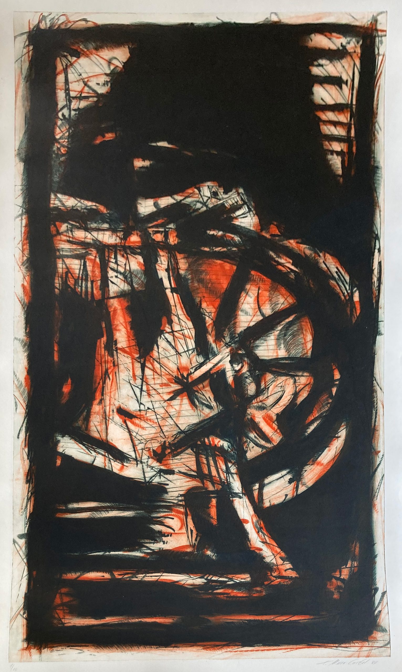 For example, for Otto Steinert’s student Monika von Boch (1915–1993), a photograph of a stack of tinplate at the Dillinger Hütte steelworks formed the basis of an increasingly abstract series of forms created through enlargement. Thomas Meier-Castel created his cycle of large-format colour etchings, entitled ‚Adieu, Herr von Stumm‘, to mark the dismantling of the Neunkirch ironworks in the 1980s.