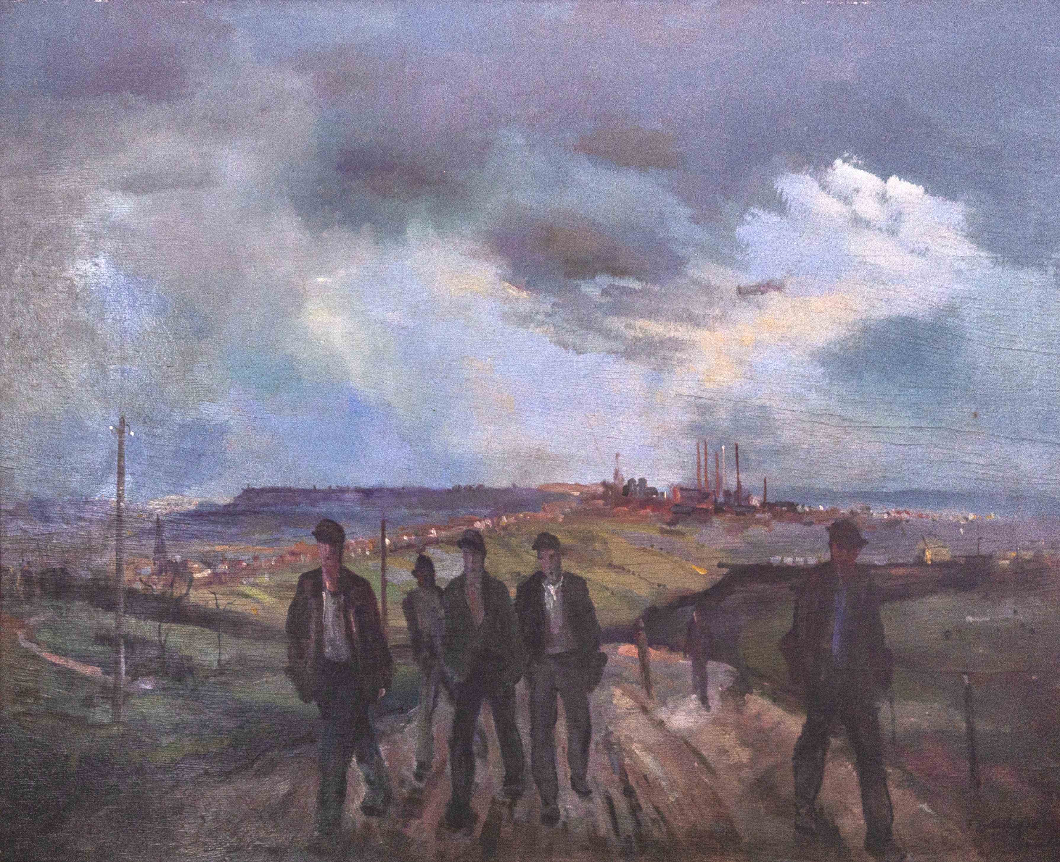 The well-known ‚painters of miners and steelworkers‘, Fritz Zolnhofer (1896–1965) and Walter Bernstein (1901–1981), offer a representational treatment of the impressions they gathered in their immediate surroundings: the world of miners, steelworkers, mines and smelters. However, their pictures rarely depict people engaged in hard labour. Miners going to work or returning home were a popular motif that permitted more idealised portrayals.