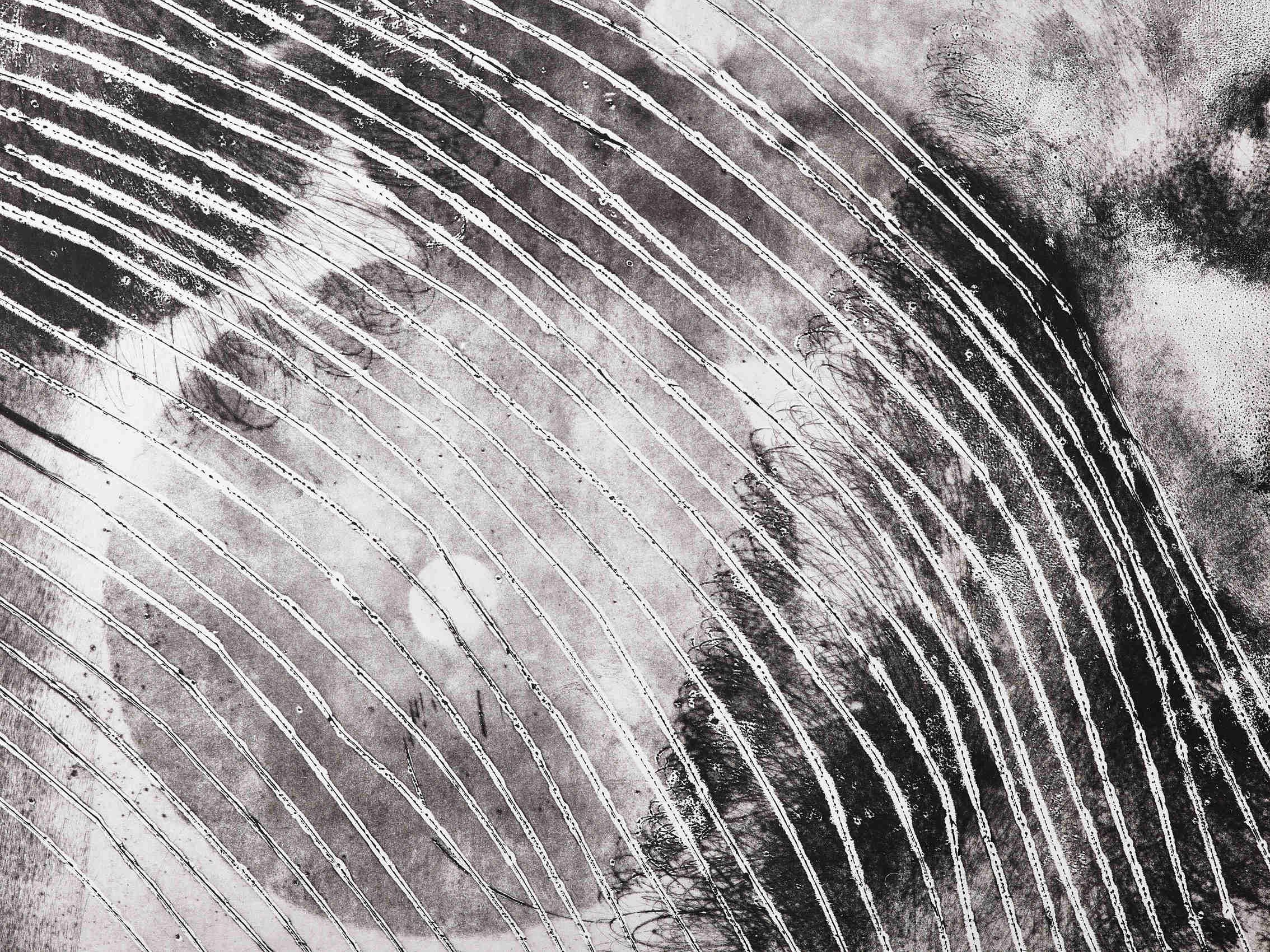 For his prints on paper Thomas Meier-Castel used a variety of tools and devices to evolve a rich and highly nuanced idiom that ranges from delicate lines as traces of motion and “commotion” to extremely dense structures that yet subsequently dissolve to impressive spatial effect. Thanks to the conscious use of light/ dark contrasts, rhythmic or flowing traces of movement unfold in black on light-coloured paper supports.